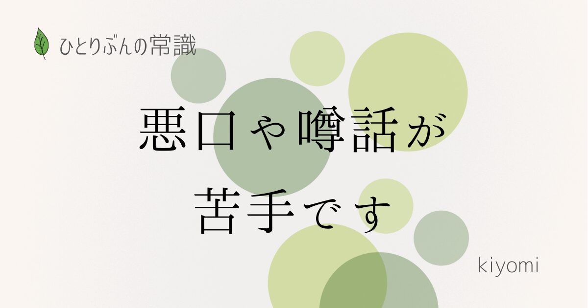 誰かの悪口や噂話が始まると、私はとても嫌な気持ちになります。